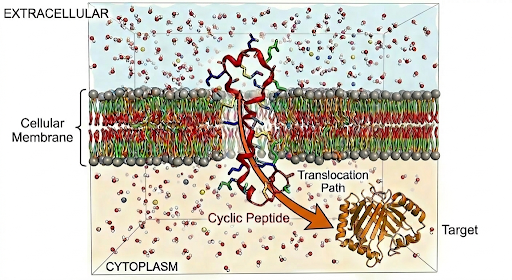 Building on the potential of cyclic peptides to target “undruggable” intracellular protein–protein interactions, the research focuses on overcoming a critical limitation: poor membrane permeability.