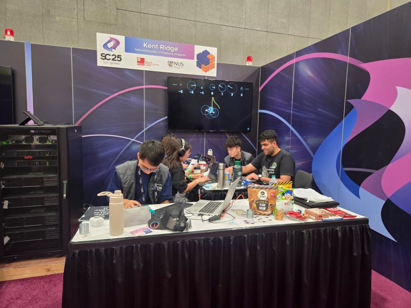 A highlight of the event was the participation of the Singapore student teams from the National University of Singapore (NUS) and Nanyang Technological University (NTU) who took part in the SC25 Student Cluster Competition, supported by NSCC Singapore. This was the first time ever that 2 Singapore teams competed against international student teams in demonstrating their ability to apply technical knowledge and work together to tackle challenging tasks within a tight competition timeframe. Their participation reflects Singapore’s ongoing commitment to nurturing HPC talent, giving students valuable exposure to learn alongside international peers and gain confidence in their abilities.