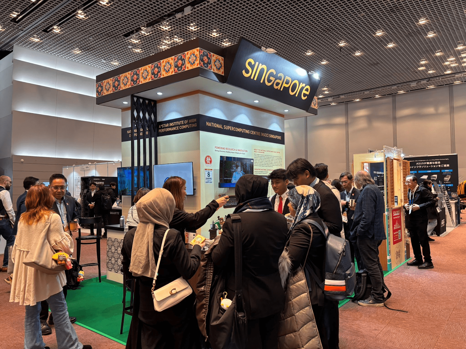 On the exhibition floor, Singapore was represented through a dedicated Singapore Pavilion, adopting a distinctive Kopitiam (coffee shop) theme, that offered a warm, recognisable local welcome while showcasing Singapore’s national HPC and quantum computing capabilities alongside key research initiatives.