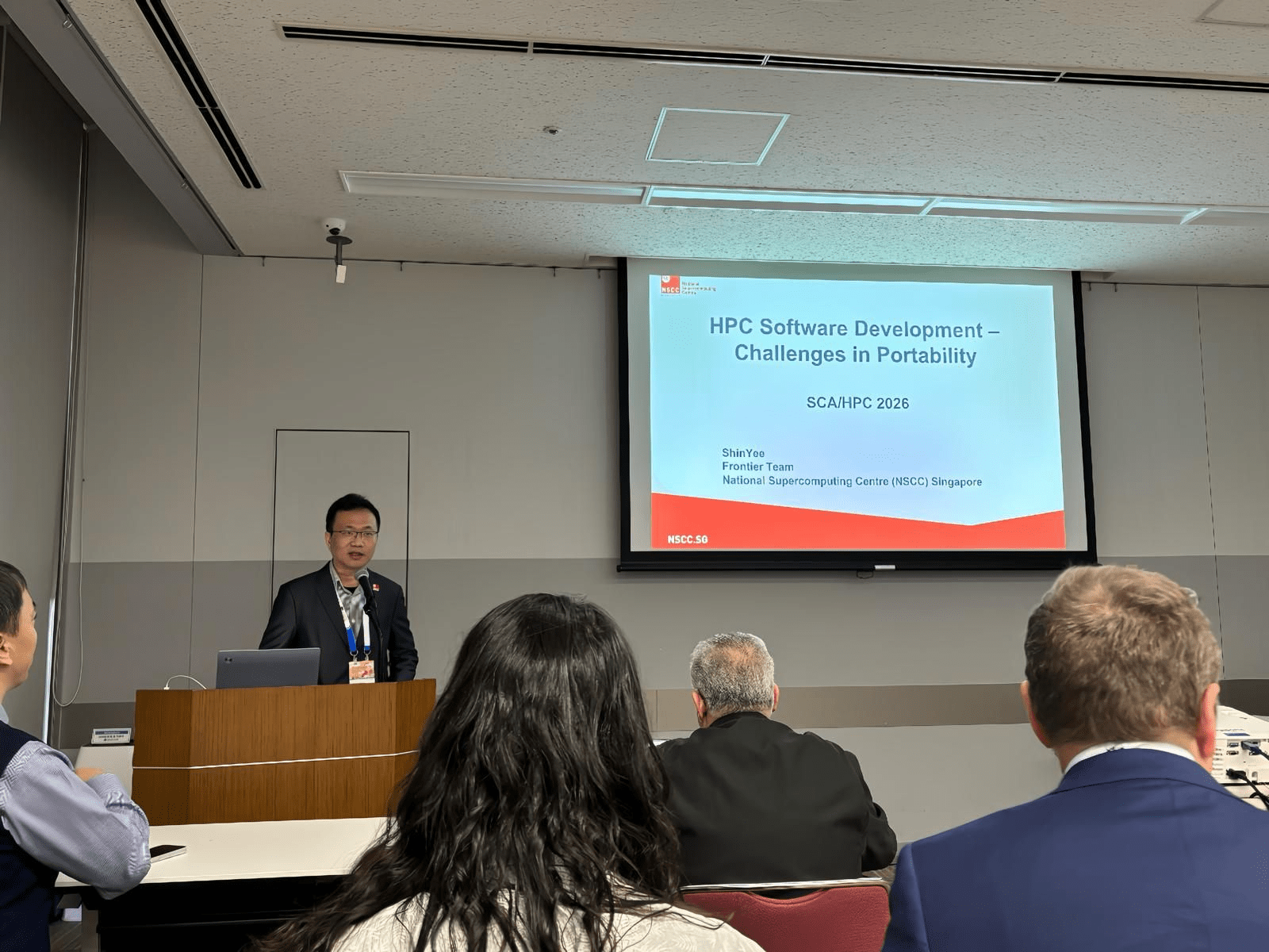 NSCC Singapore’s technical contributions were further represented by Mr Shin Yee Chung, Senior Assistant Director (Frontier Lead), who shared practical insights on HPC software development and portability during the 2026 APAC HPC-AI Competition session.