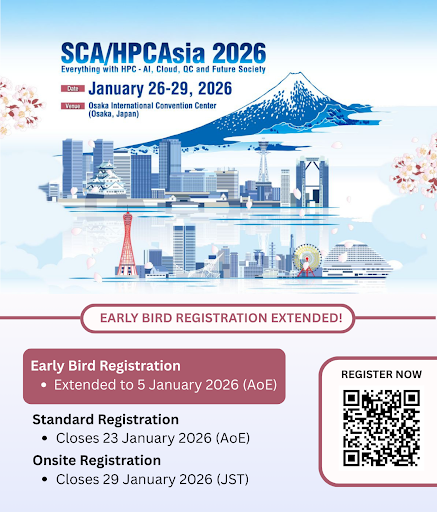Early Bird registration for SCA/HPCAsia 2026 has been extended to 5 January 2026 (AoE), giving interested attendees additional time to secure discounted rates for the upcoming conference in Osaka, Japan.